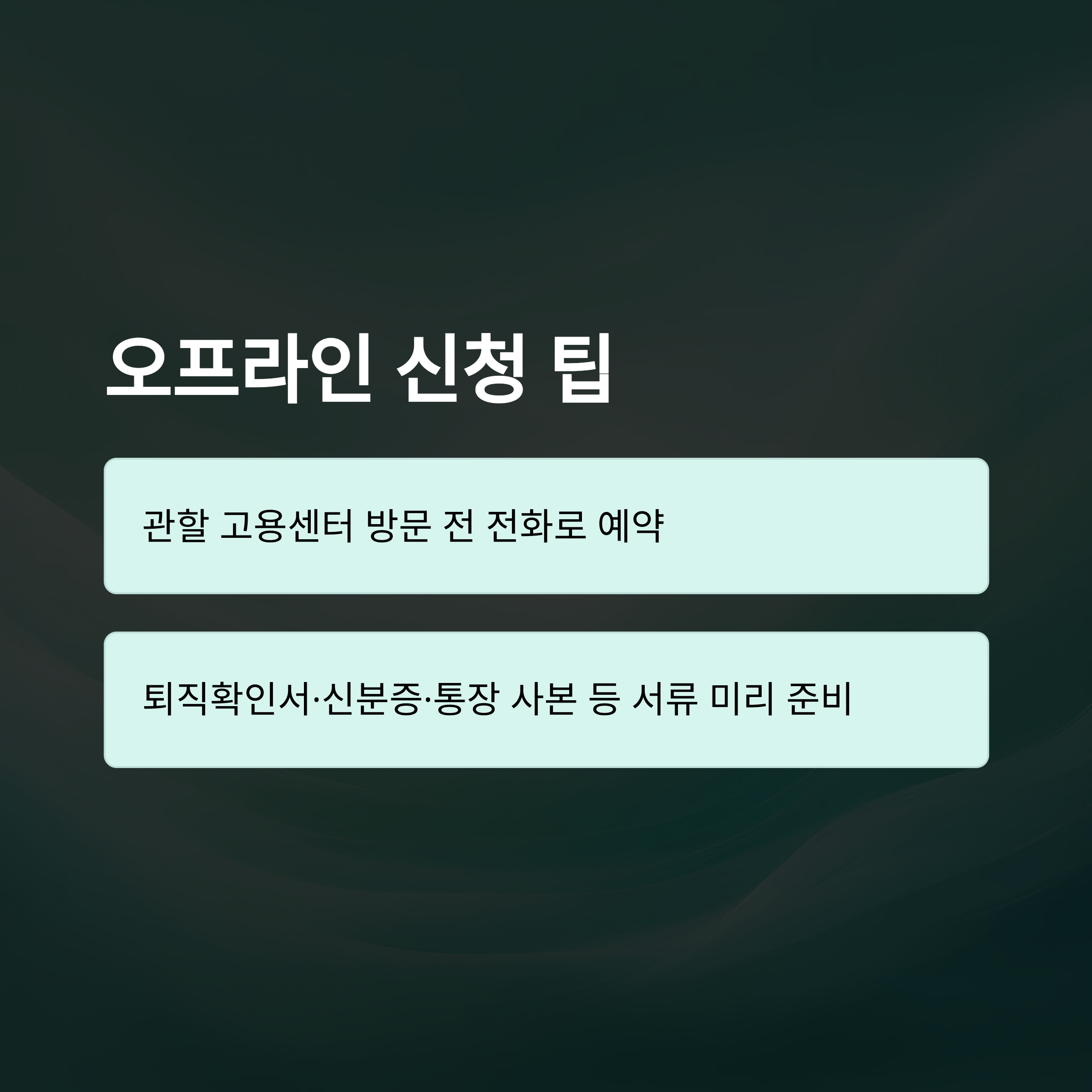 온라인 이용이 어려우신 분들은 관할 고용센터를 방문해 신청서를 작성할 수 있습니다. 저는 첫 신청 시 방문 예약을 하지 않아 긴 대기 시간을 겪었는데, 사전 전화 예약을 통해 방문 일정을 잡으면 최소 대기 시간으로 빠르게 처리됩니다. 방문 시 퇴직확인서, 신분증, 통장 사본 등 서류를 미리 준비해 가시면 훨씬 수월합니다.