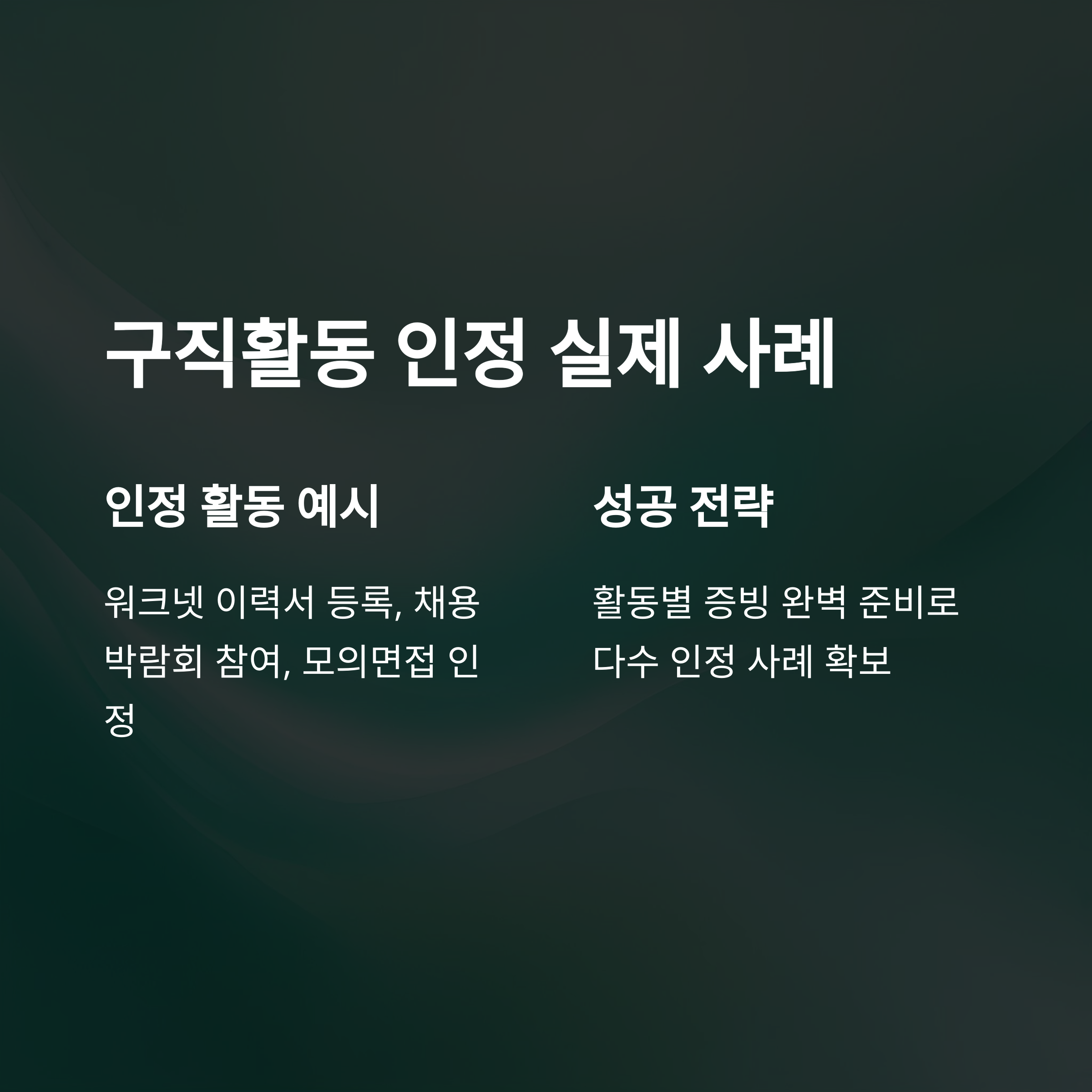 저는 워크넷 이력서 등록, 채용설명회 참여, 온라인 모의면접, 오프라인 박람회 참가 등 4가지 활동을 병행해 구직활동을 인정받았습니다. 특히 채용박람회 참여 확인서를 스캔해 제출하니 단일 활동에도 2회 인정이 가능했는데, 이처럼 활동별 인정횟수와 증빙 방식을 잘 활용하면 수급 요건을 손쉽게 충족할 수 있습니다.