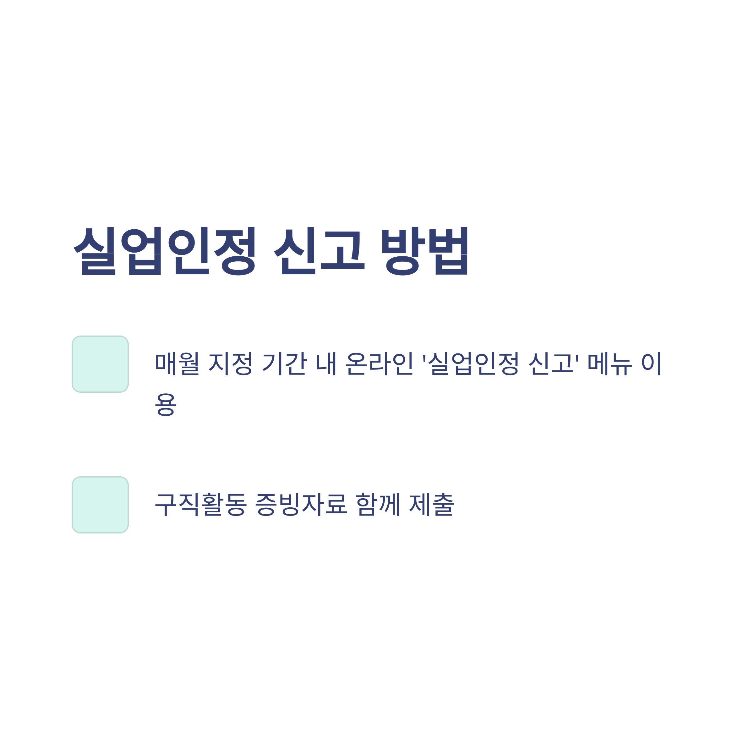 - ✔ 매월 실업인정 신고 및 증빙 제출