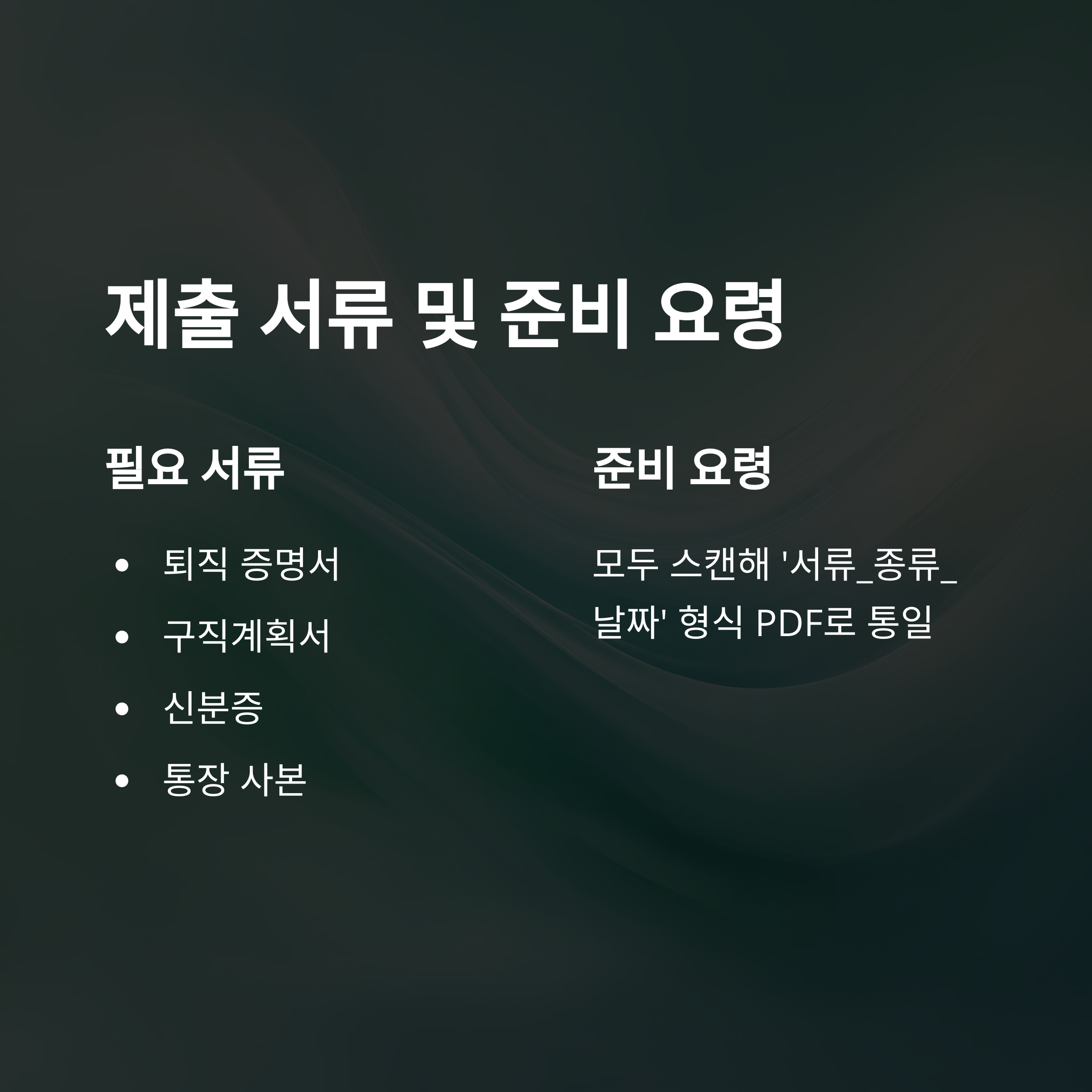 - ✔ 퇴직 증명서 및 구직계획서 제출