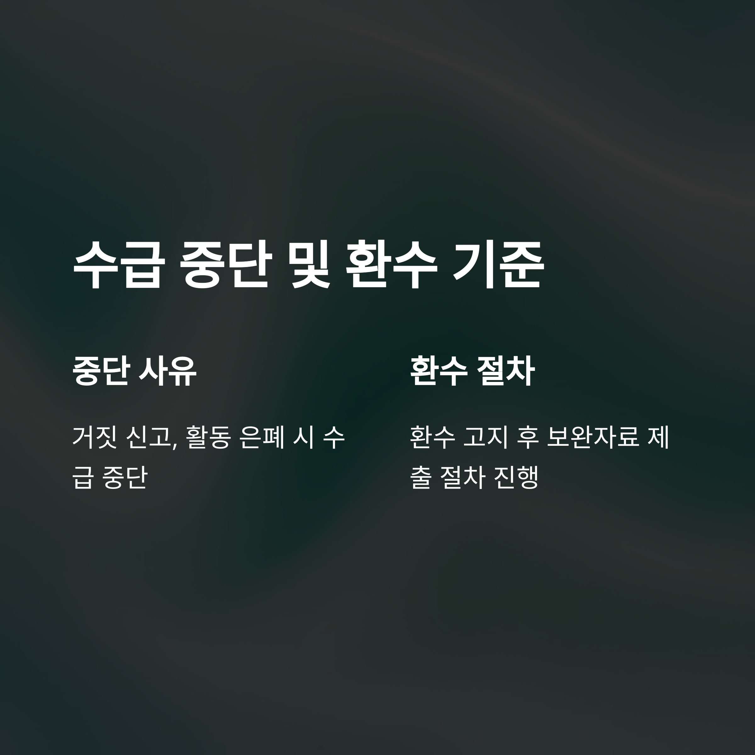 구직활동 미이행, 거짓 신고, 재취업 사실 은폐 등 위반 시 수급 중단 및 환수 대상이 됩니다. 저는 지인 추천으로 단기 아르바이트를 했던 사실을 숨겼다가 후에 환수 고지서를 받은 경험이 있어, 반드시 활동 내역을 투명하게 기록하고 신고해야 합니다. 환수 기준은 고용보험 환수 안내에서 확인할 수 있습니다.