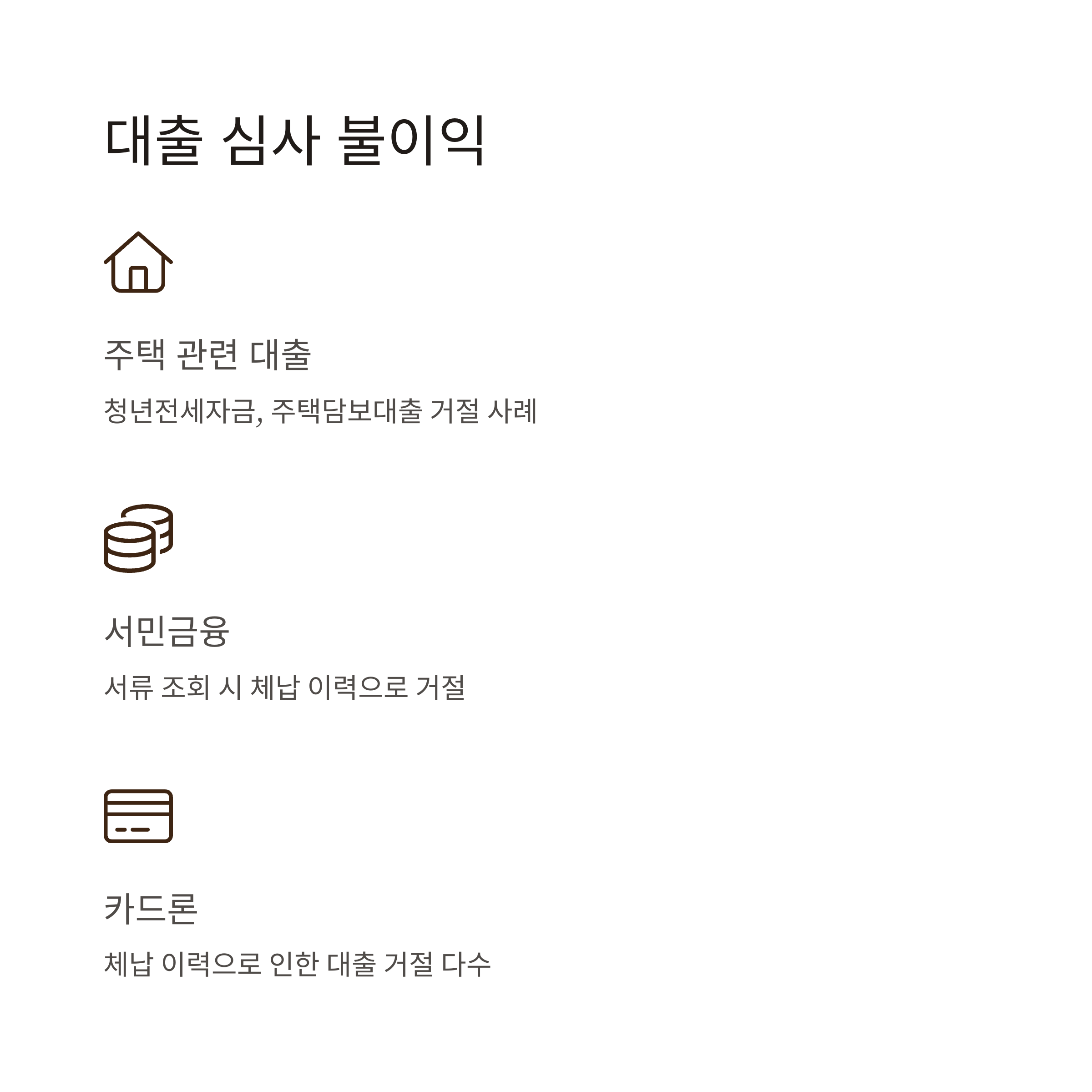 | 대출 심사 영향 | 서민금융, 청년대출 등 불이익 발생 |