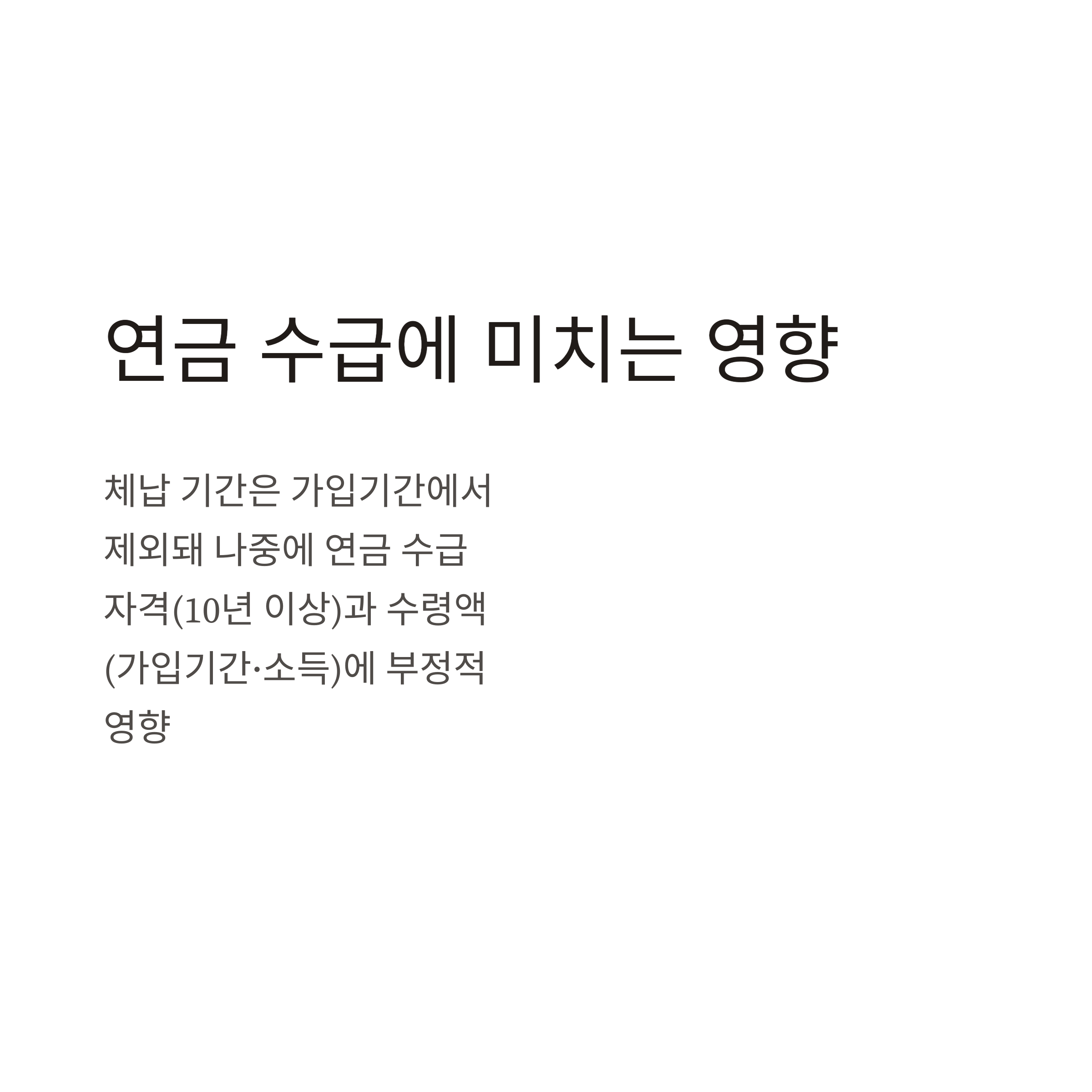 체납 상태가 지속되면 향후 국민연금 수령에도 영향을 미칩니다. 저는 이 부분을 가장 나중에 알았는데, 납부하지 않은 기간은 ‘가입기간에서 제외’되어 수령 금액이 줄어들더라고요.