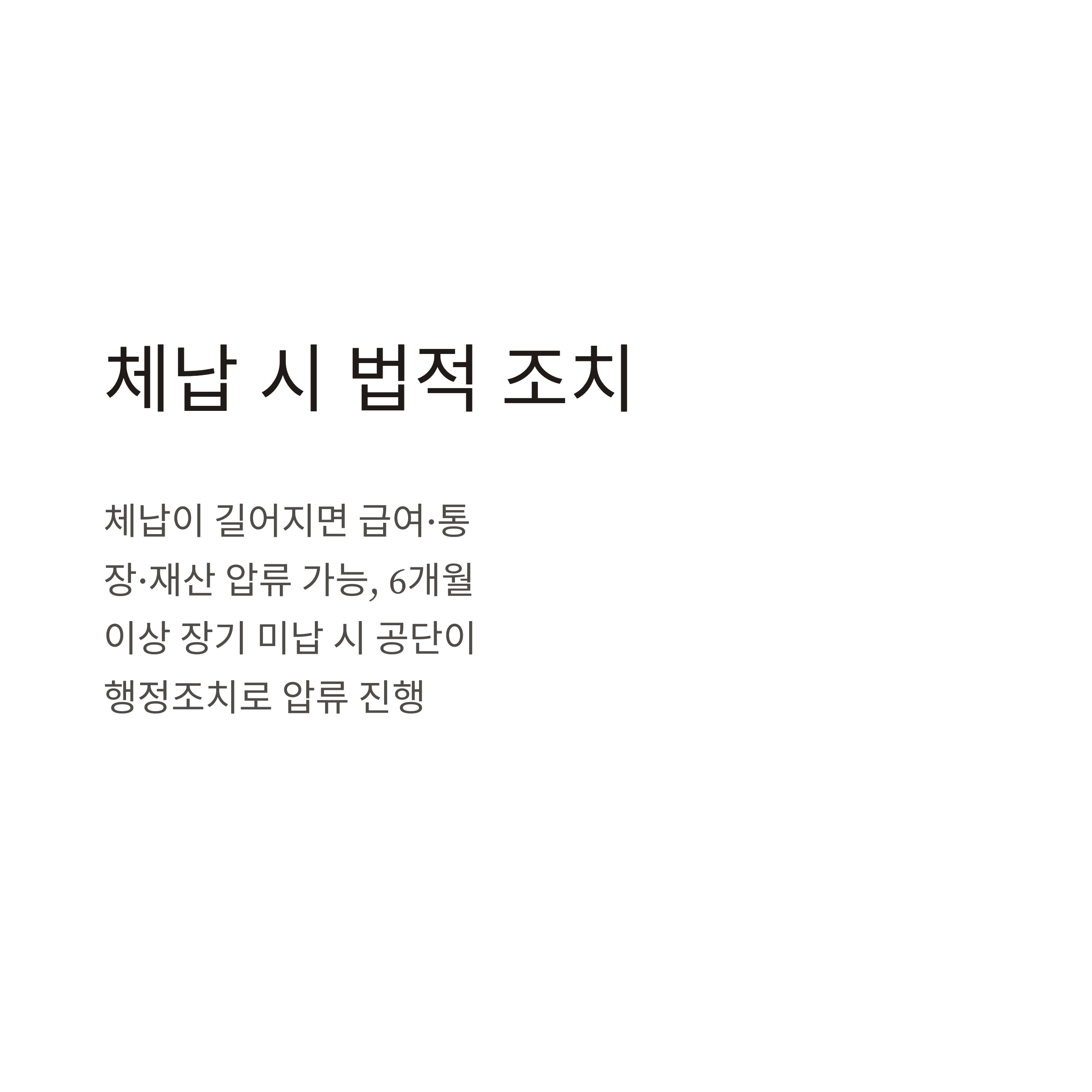 | 압류 기준 | 6개월 이상 체납 시 행정조치 대상 |