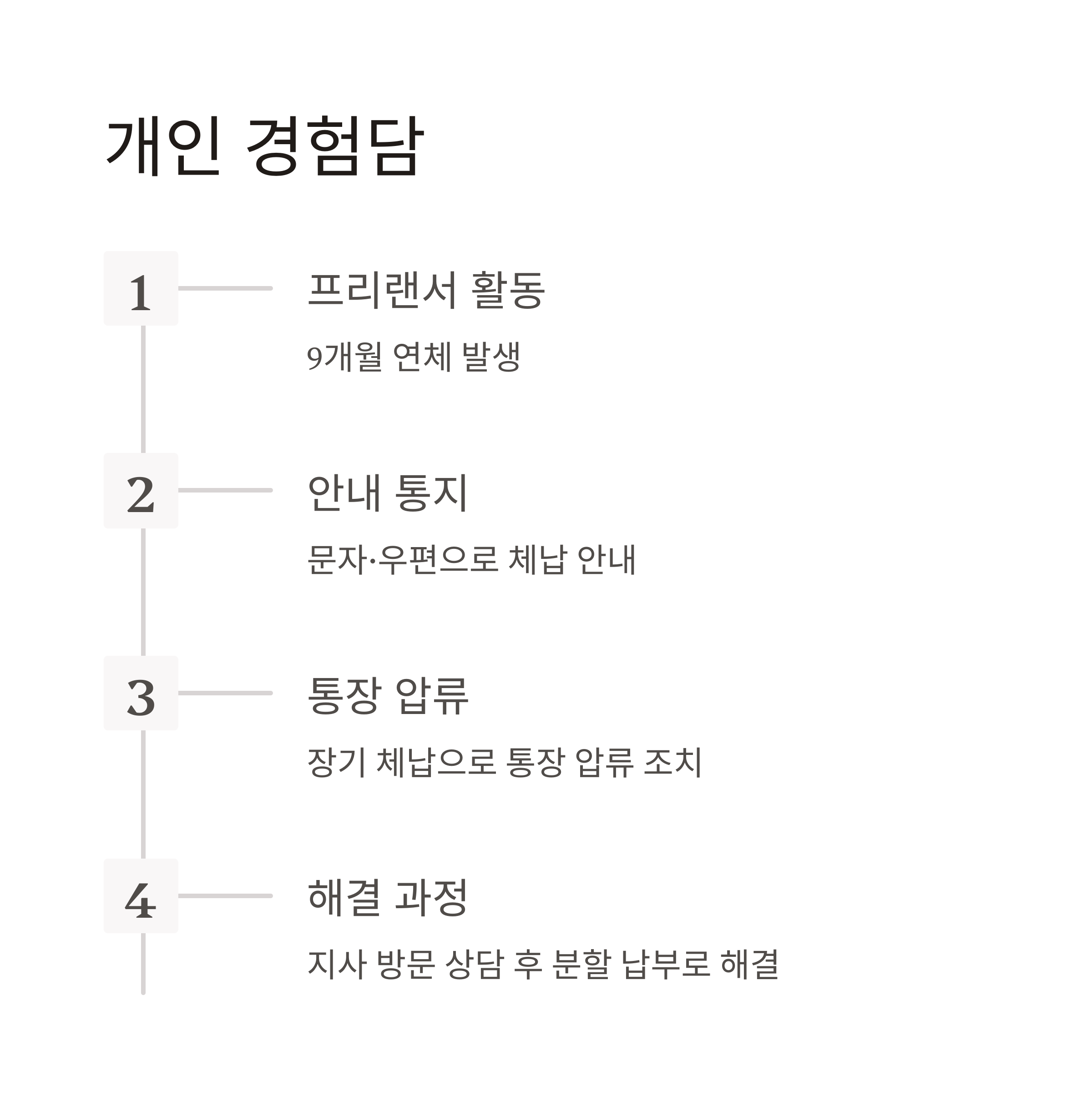 제가 경험한 사례로는, 사업 초기 자금 압박 때문에 몇 달 납부를 미루다가 체납 통보를 받았습니다. 그때 공단에서 오는 우편과 문자 안내 덕분에 얼른 사태를 알게 되어 다행이었어요. 하지만 미리 알았다면 더 큰 불이익을 피할 수 있었을 것 같습니다.