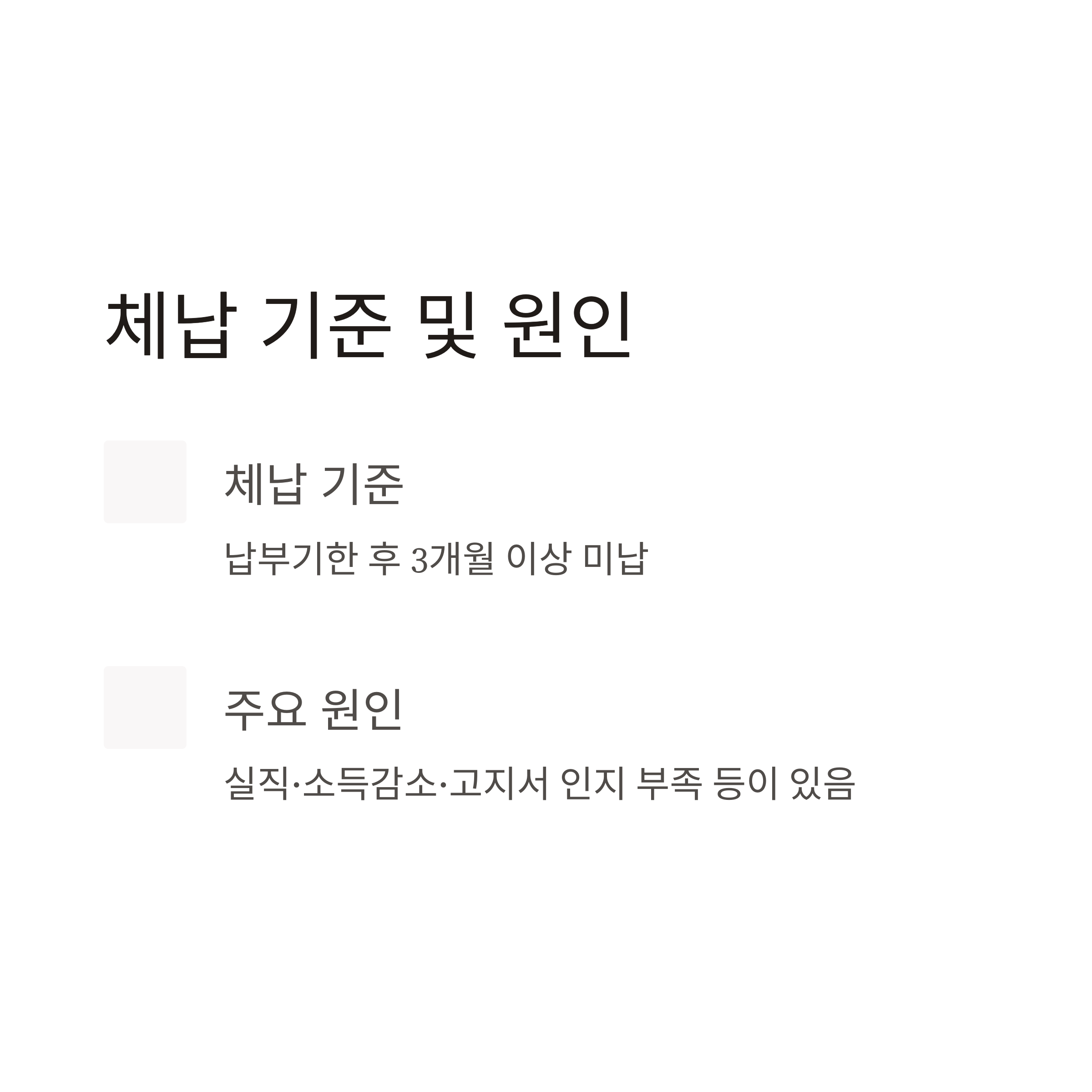 | 체납 기준 | 납부기한 이후 3개월 이상 미납 |