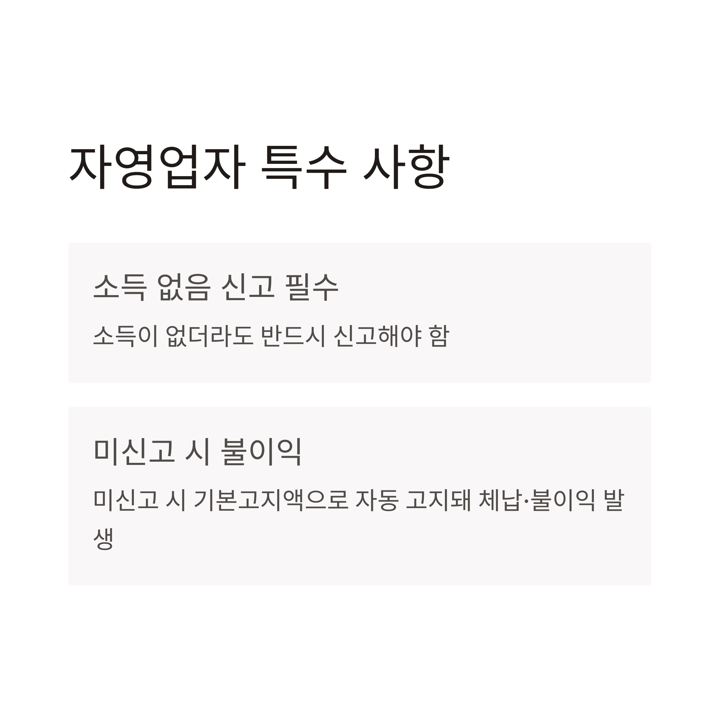 - 실제 소득이 없으면 ‘소득 없음 신고’ 필수