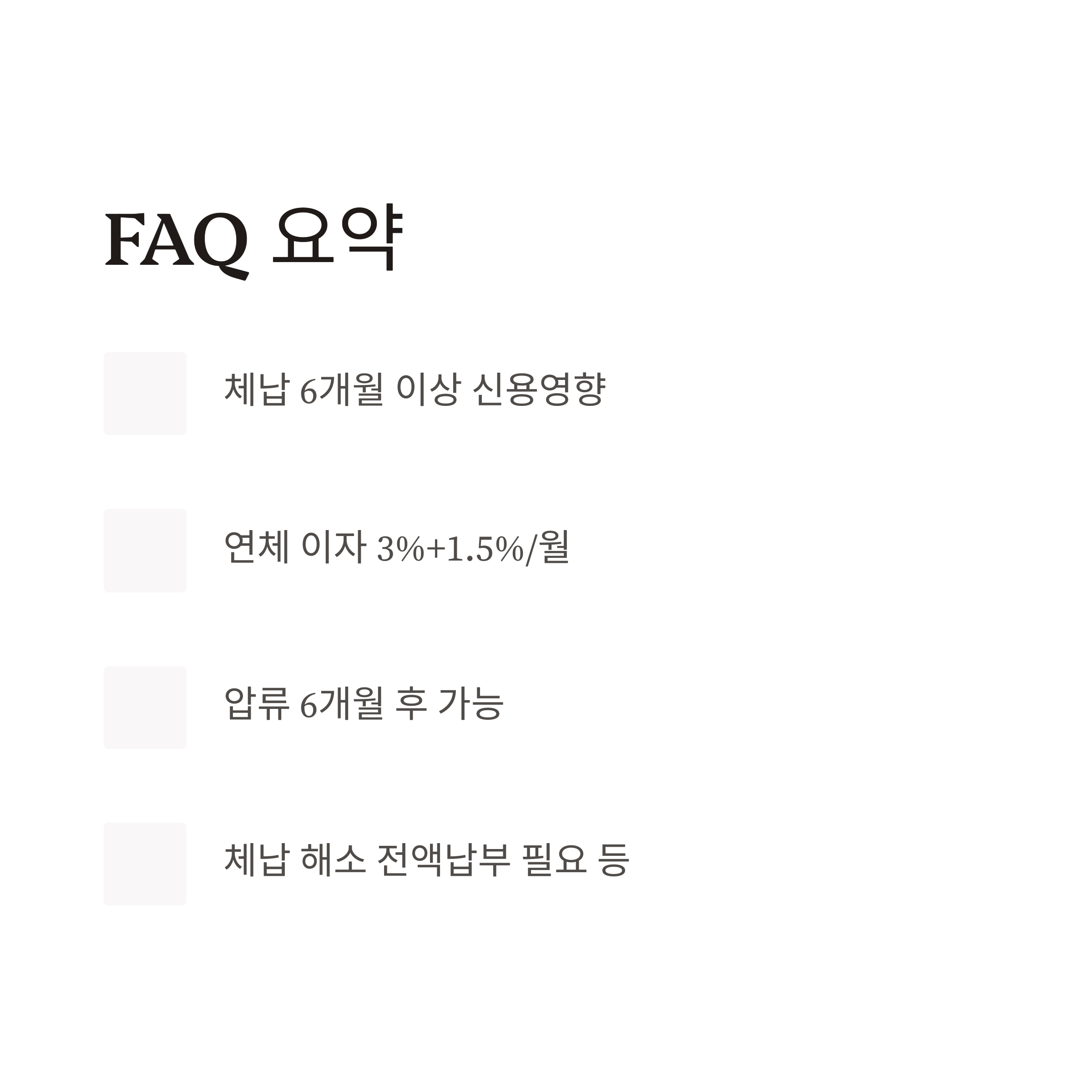 - 장기 체납 후 압류·차압 등 공시절차 발생 시 등급 하락 위험