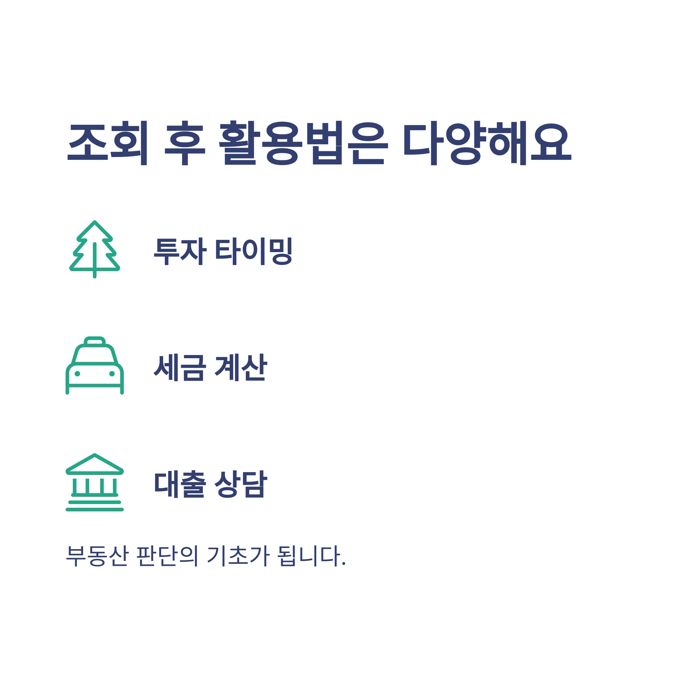| 가격 협상 | 매도인에게 시세 근거로 활용 | 매매 계약 전 유리한 조건 확보 가능 |