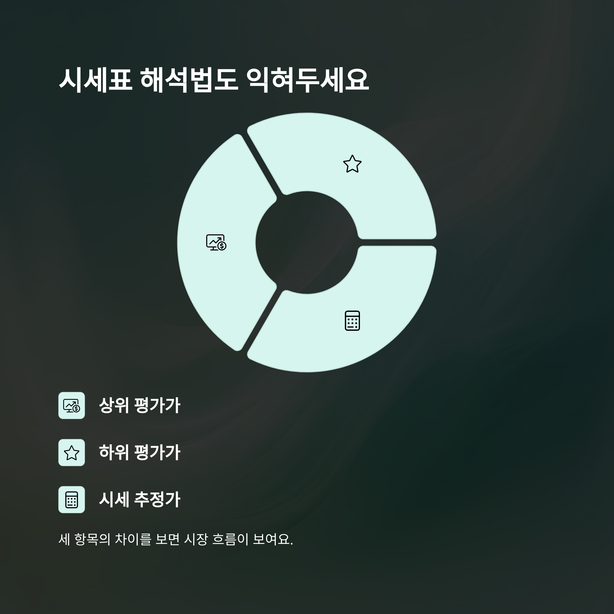 시세표를 볼 땐 단순히 ‘가격’만 보는 게 아니라, 이 세 항목 간의 차이를 보며 변동성과 시장 분위기를 파악하는 게 중요해요. 예를 들어 상위/하위 평가가의 폭이 크다면, 시장이 불안정하거나 거래가 적다는 신호일 수 있습니다.