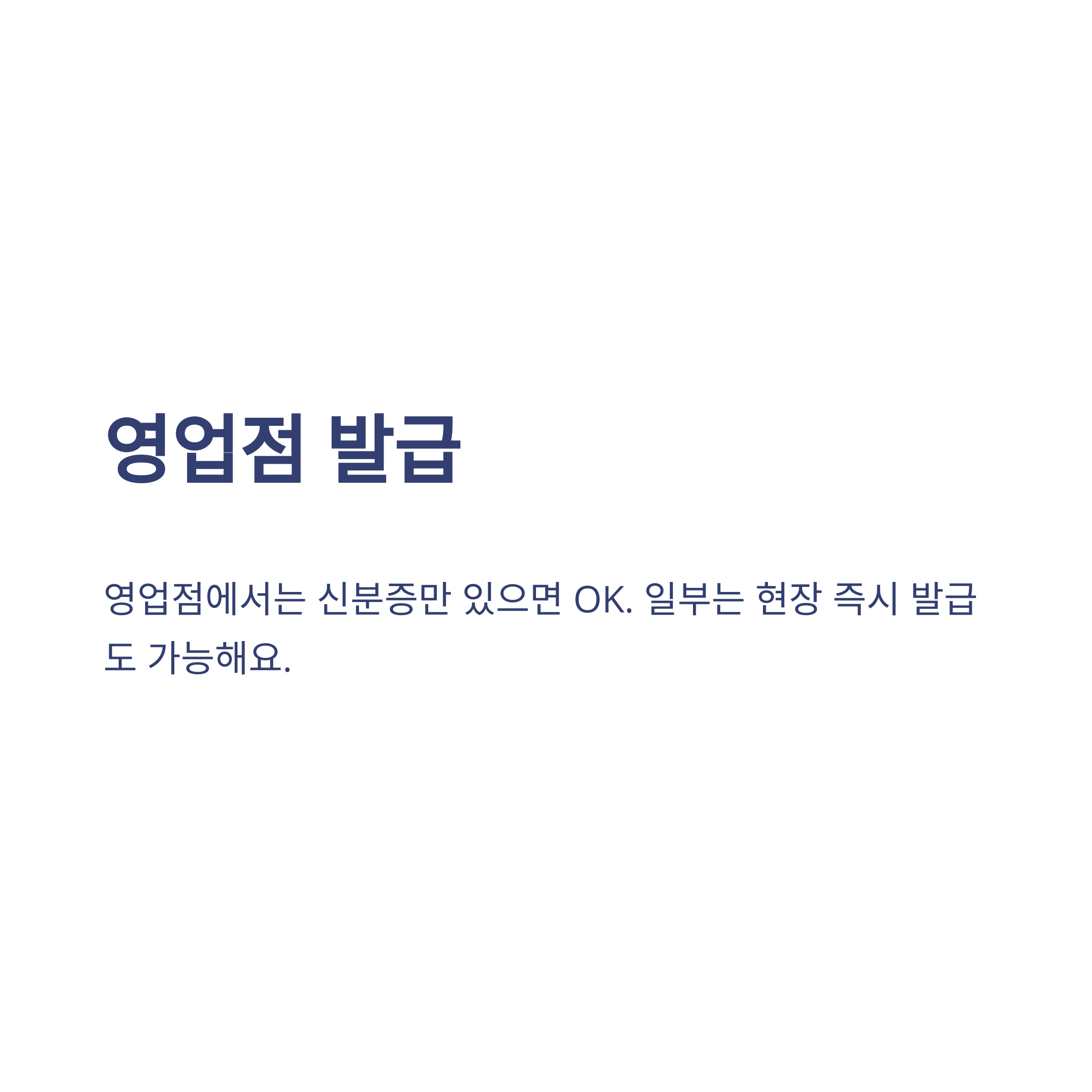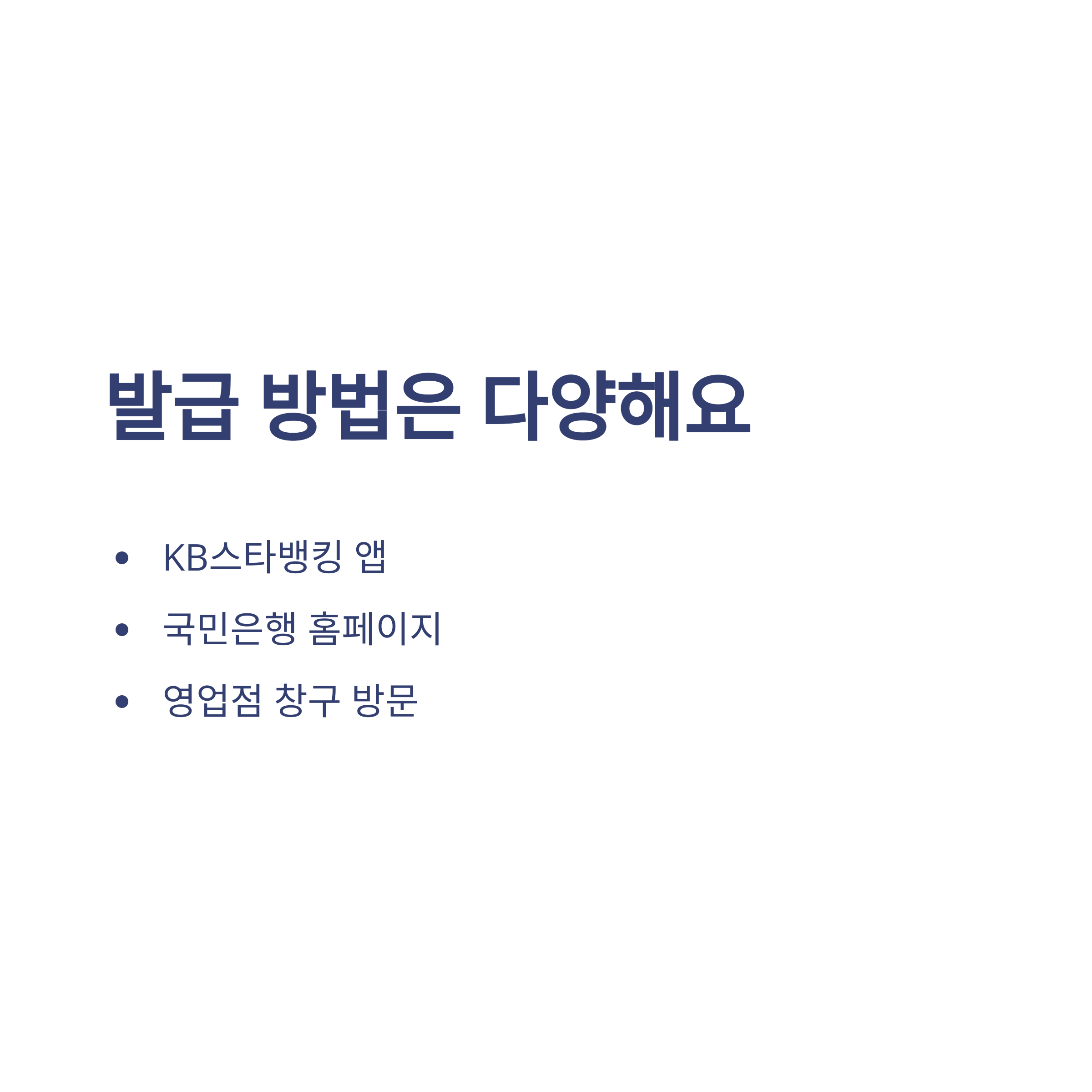| 발급 방법 | 모바일, 영업점, 웹사이트 |