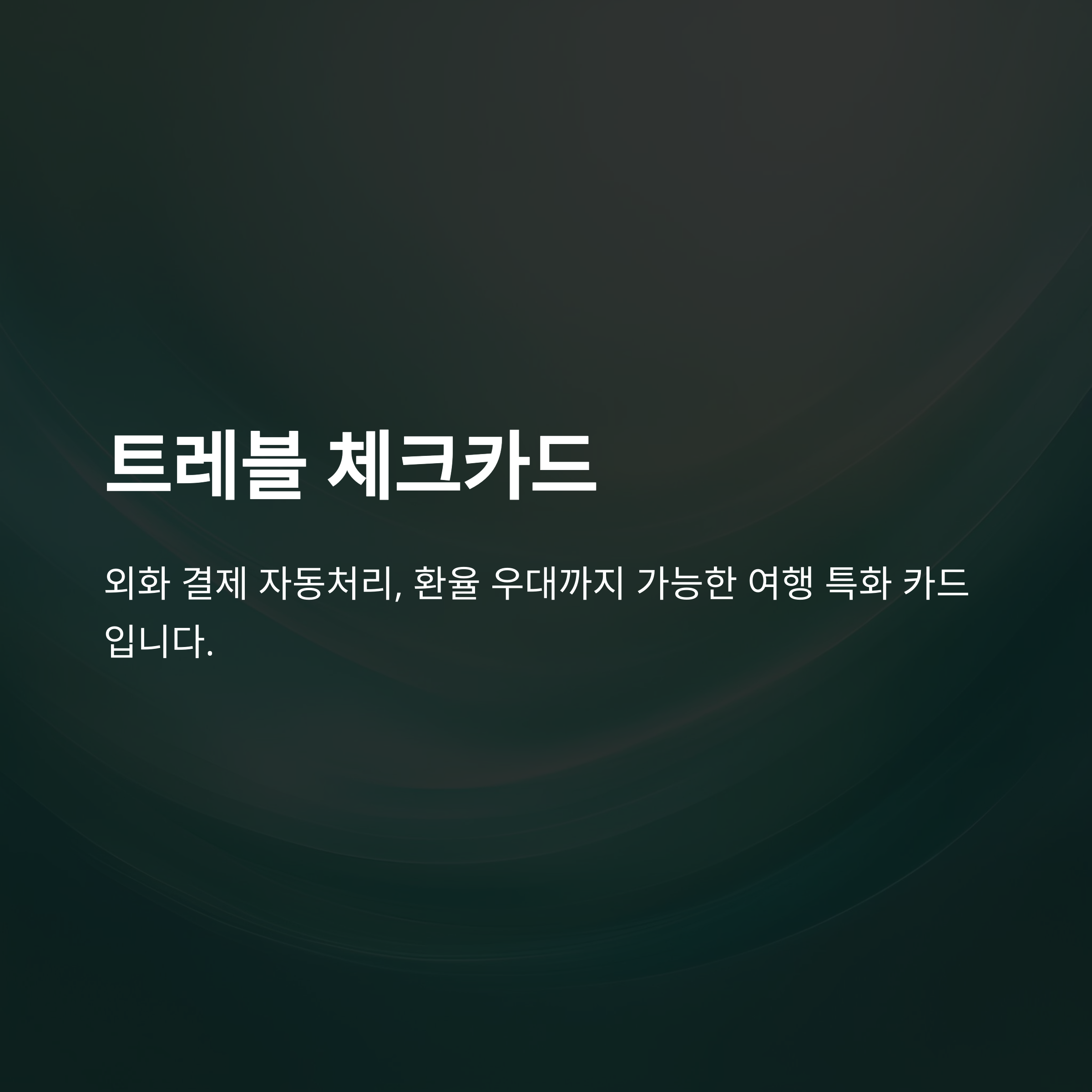 | 트레블체크카드 | 해외여행자 | 해외 수수료 저렴, 외화 자동 결제 |