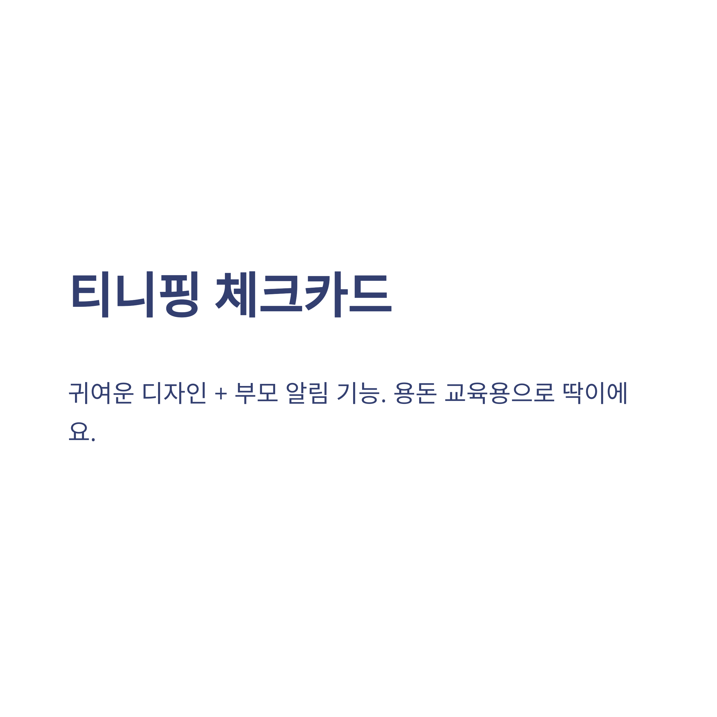 | 티니핑 체크카드 | 어린이 | 귀여운 캐릭터 디자인, 사용내역 문자 알림 |