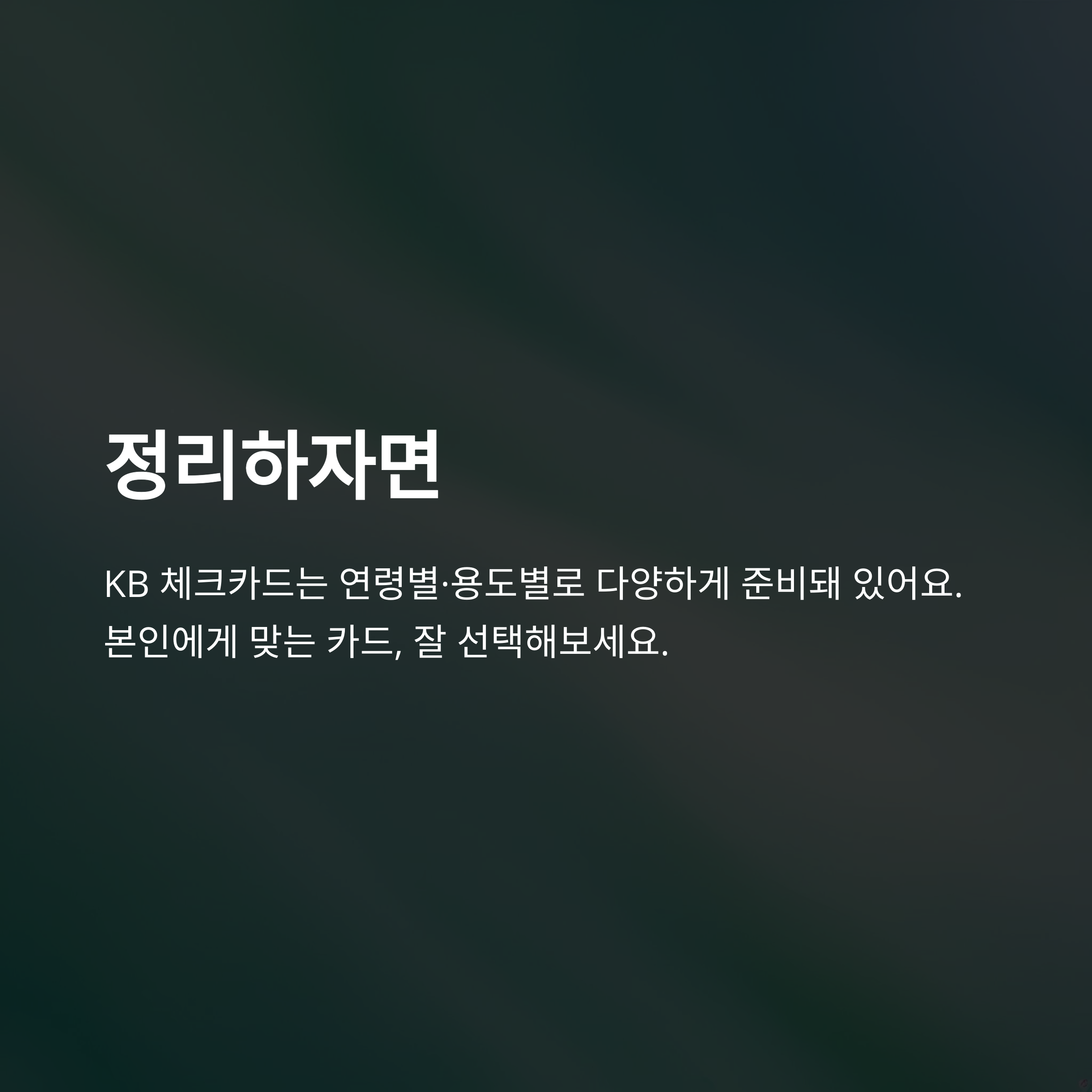 | 만 13세 이하 | 개별 체크카드 발급 불가, 가족카드로만 가능 |