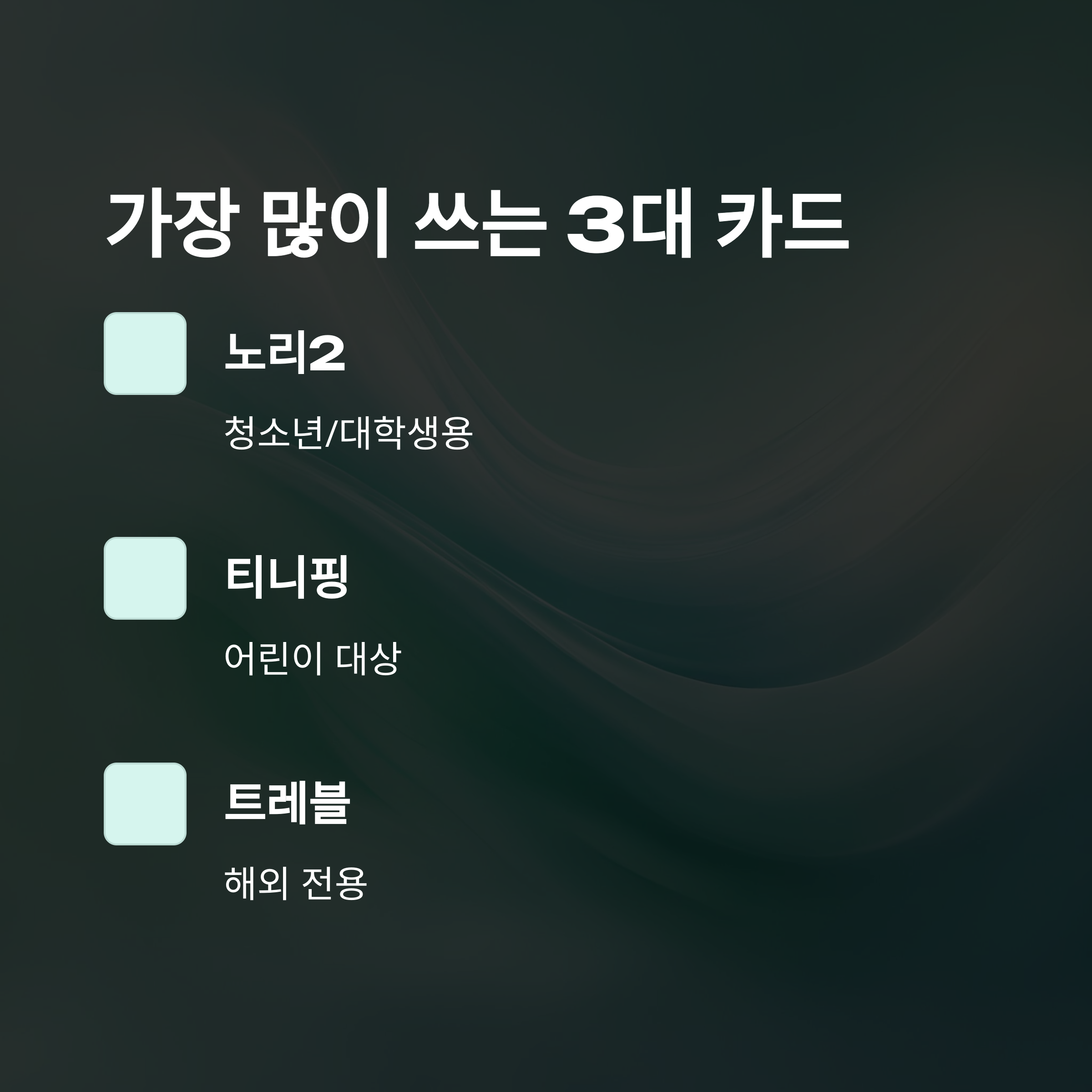 | 노리2 체크카드 | 청소년/대학생 | 교통/편의점 할인 중심 |
