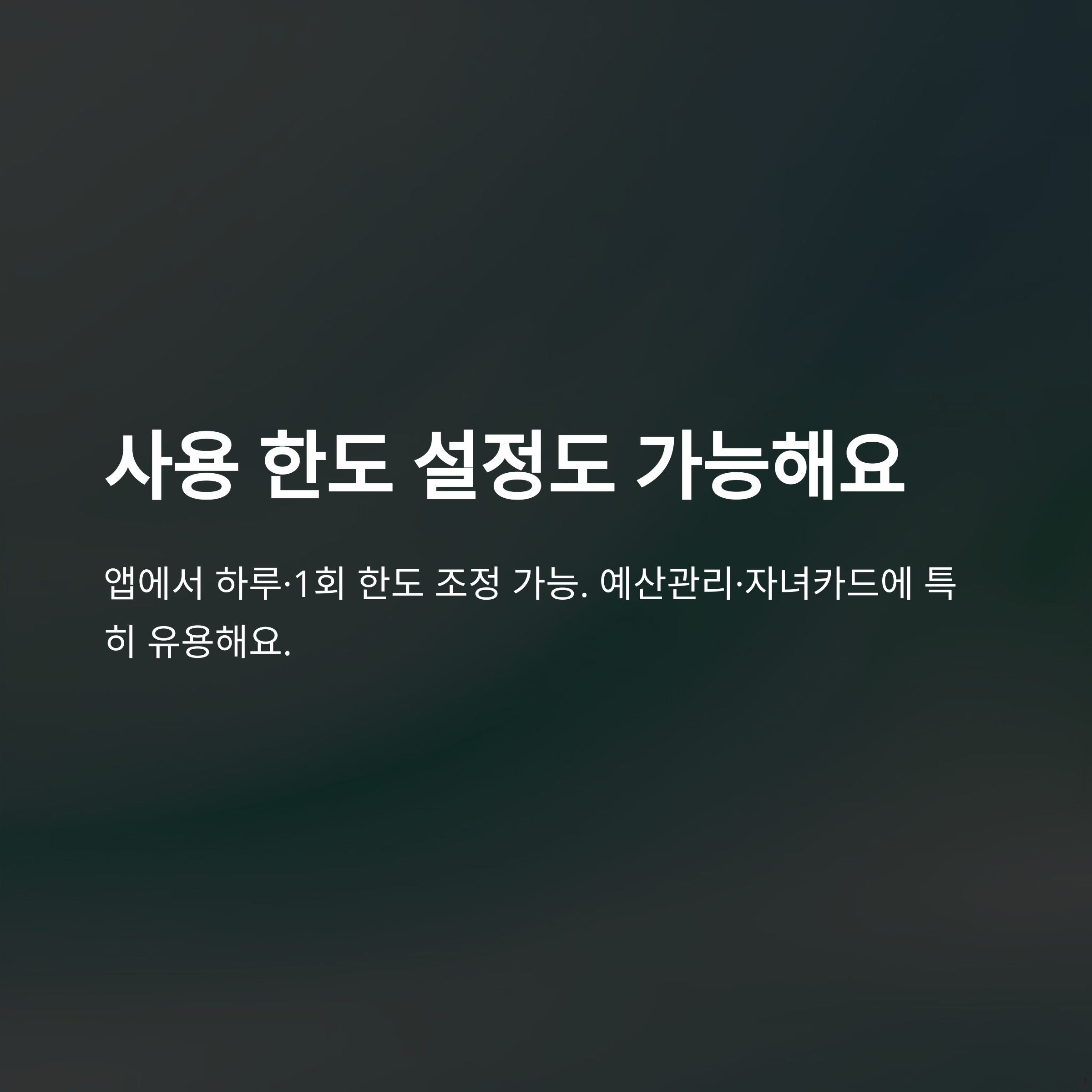 | 한도 설정/변경 | 앱 내에서 즉시 조정 가능 |