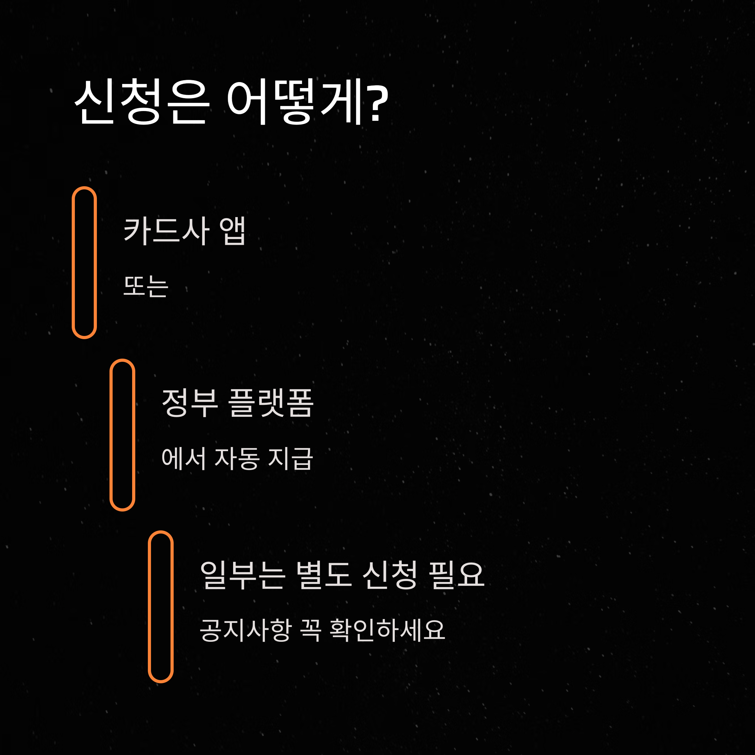 대부분 카드사 자동 지급이나 정부 지정 플랫폼에서 신청 가능합니다.