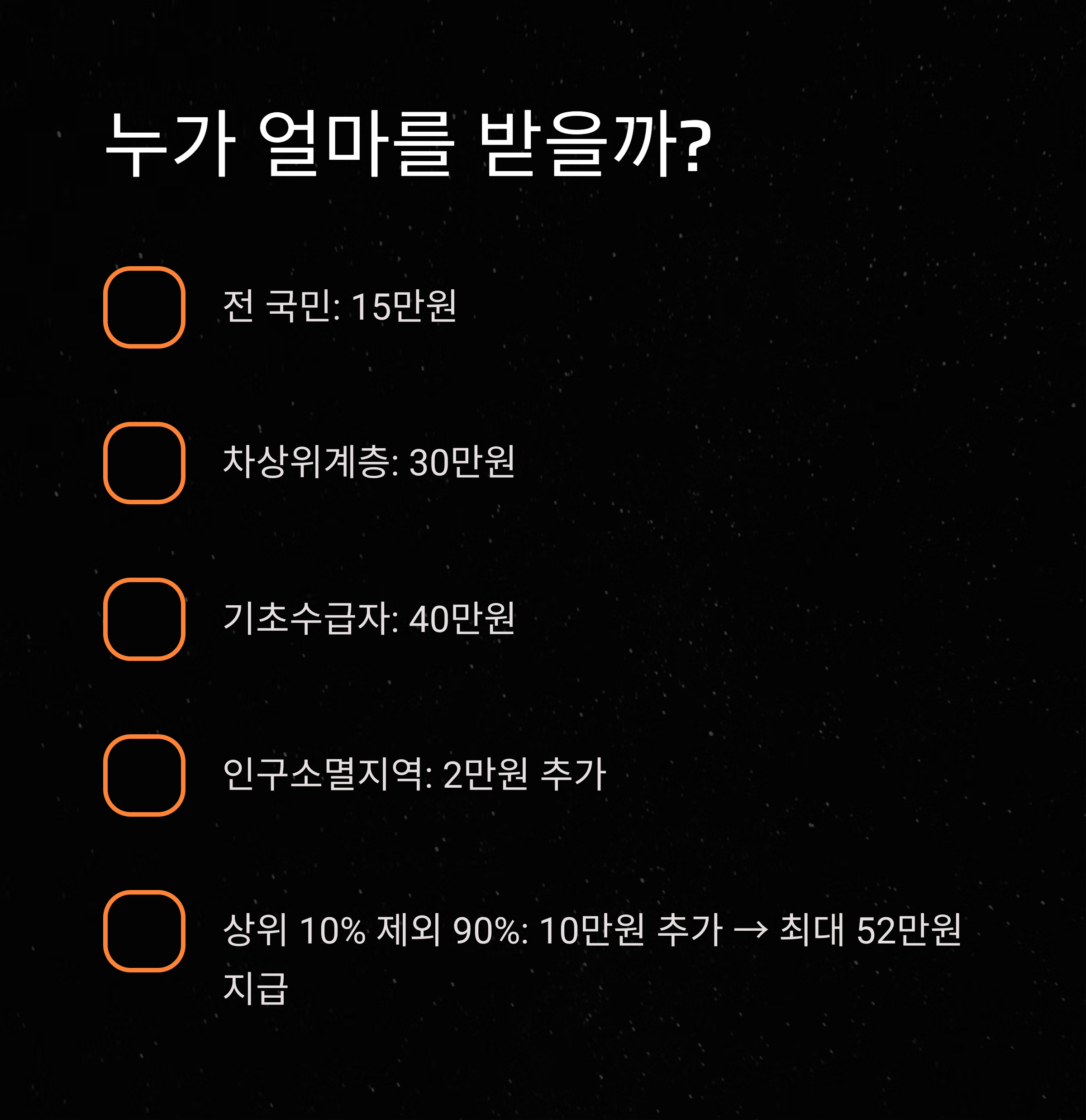 | 전 국민 기본 지급 | 15만원 |