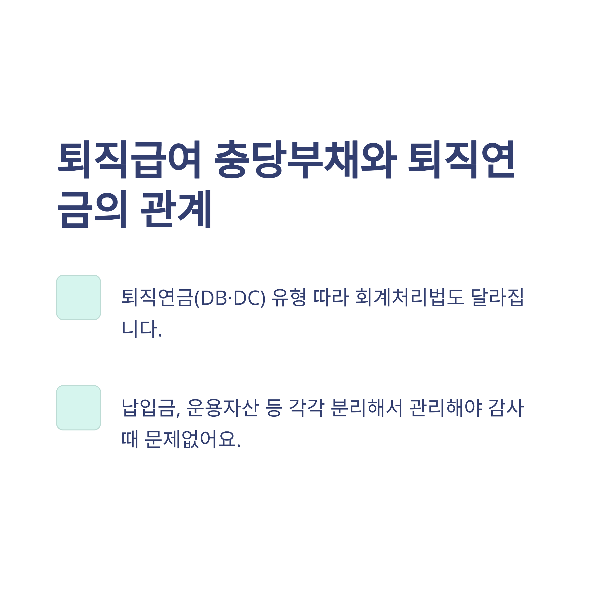 실무에서는 회계감사에서 연금형별 충당부채·납입금 산정이 빠짐없이 구분되는지 점검이 집중적으로 이뤄집니다.